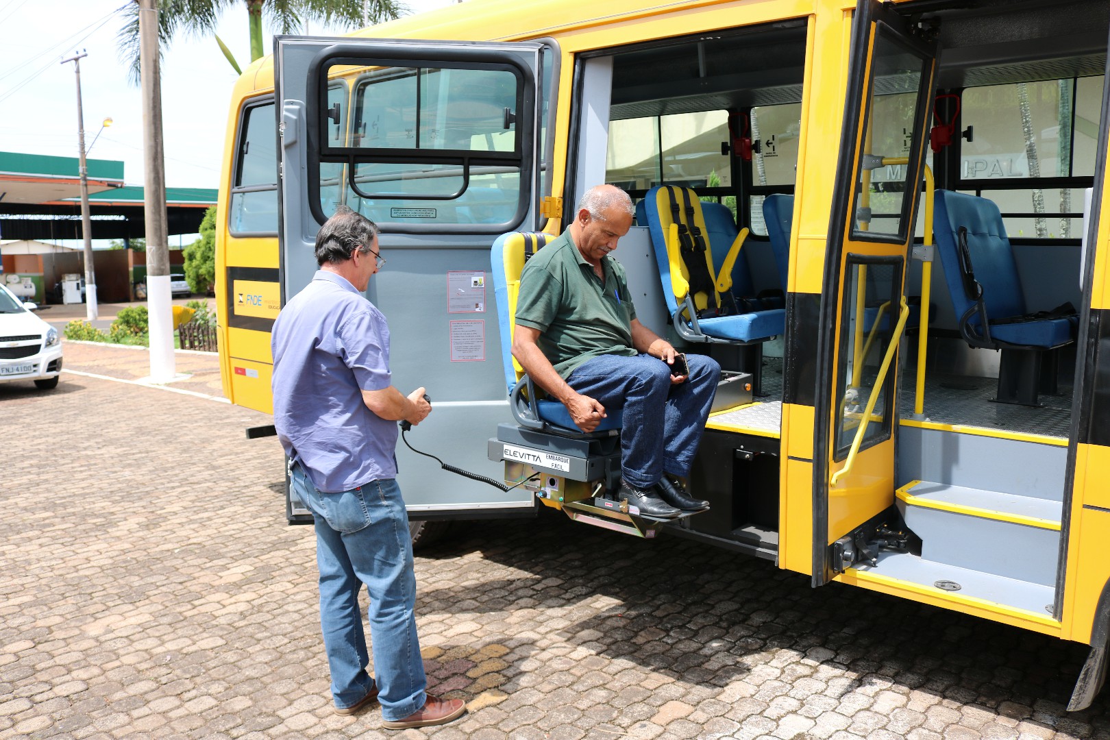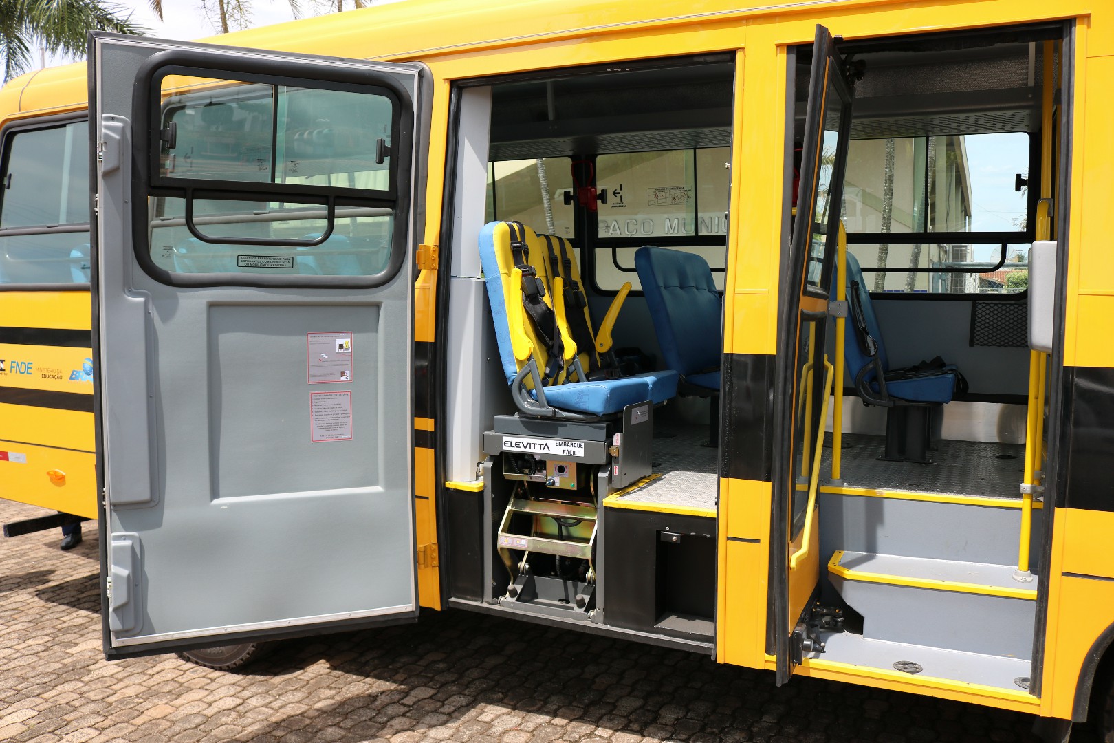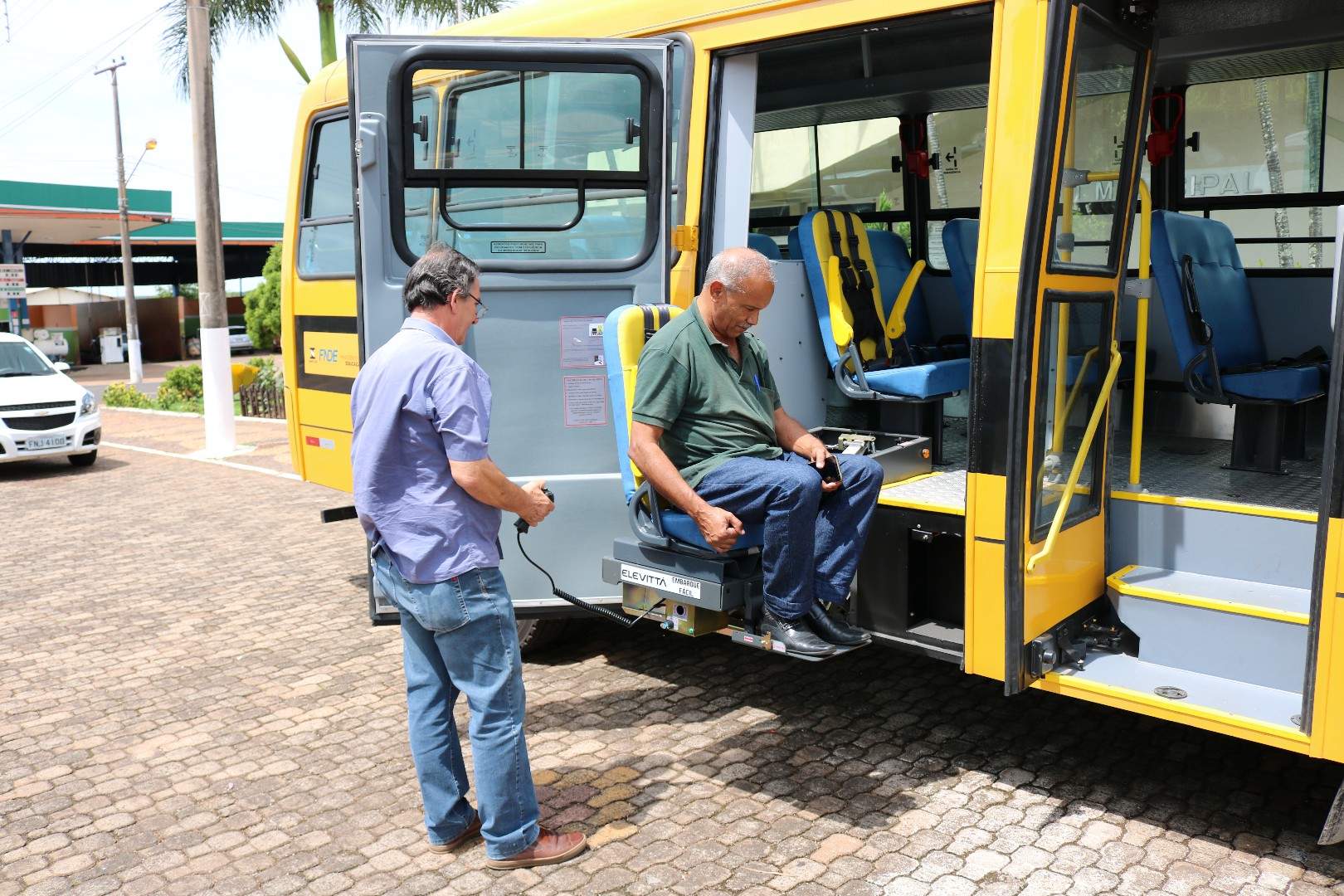 O micro-ônibus é totalmente acessível sendo ele adaptado para cadeirantes, tendo um banco rebaixável para facilitar o embarque do passageiro, além de um suporte para prender a cadeira de rodas.